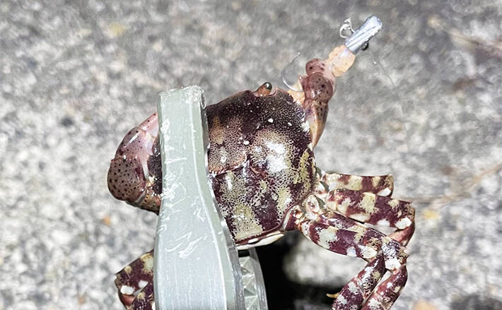 ジグ単は全般、エビや小魚にでも見えるのだろう。エビを食わない魚はいないから何でも食う。そして食ってくるのは、大型魚だけではない。ゲストにはまた一風変わった小さいヤツもいる。