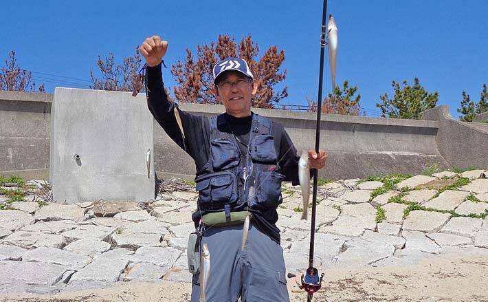 5月上旬は津市の香良洲海岸へ釣行した。潮は中潮、満潮は午前3時49分、干潮は午前9時58分。気温が上がる時間はすでに潮が上がっており、水温が下がりそうなので良い条件ではないようだ。