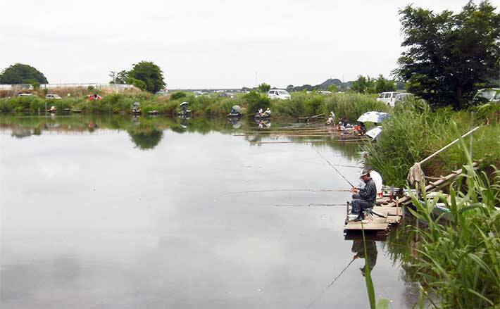 埼玉県桶川市と比企郡川島町の境にある荒川旧川の川田谷沼。近年は放流も増えたため、ヘラの魚影が濃くなったことで夏場でも宙釣りでの数釣りもできるようになった。