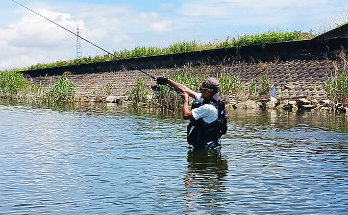 堤防沿いを覗き込むと、小さいハクが帯状に大量発生しており、時折セイゴのボイルも見られました。この状況に興奮しないアングラーはいないでしょう(笑)。