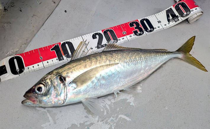 100号でやっと安定し始めたのも束の間、サメやメジマグロの横やりが多く、数が伸びないまま本命の大アジのポイントへ移動となりました。ここまでアベレージサイズが4、5匹と本調子ではない状況。深場のポイントに期待です。