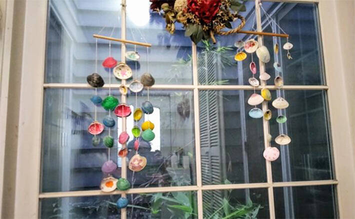 平成14年と平成20年。この二つの年の夏に、我が子の「夏休みの自由課題」として、ホンビノス貝の貝殻風鈴(ウインドチャイム)を作りました。