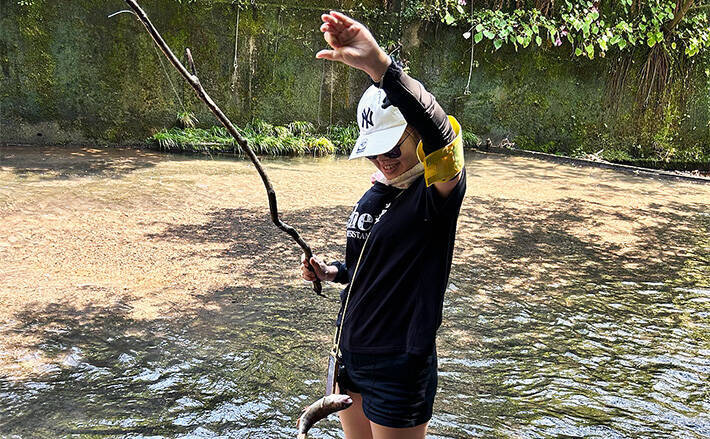 管理釣り場での釣りは手軽で初心者でも楽しめますが、今回はさらに一歩進んで、現地で見つけた木の枝を使った手作りのロッドで釣りに挑戦。自然の中で得た素材を活かし、エキサイティングな釣行を行いました。