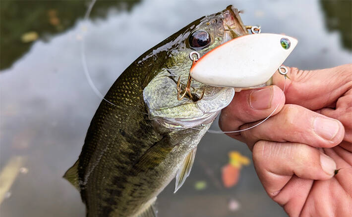 子バスが次々と反応し、このフローティングバイブが他のルアーと明らかに違う反応を見せます。オールドルアーですが最近のルアーにはないアクションがバスの好奇心を刺激していると感じました。周囲で使われることのないルアーで楽しみながら納竿としました。