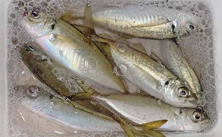 その後もこの要領でトウゴロウイワシやネンブツダイをヒットさせ、30匹ほど釣ったところで納竿。