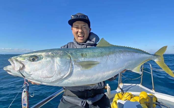 1投目、ジグが着底すると潮の流れが効いており、ジャークしていてほどよい水中の抵抗感が手元に伝わってくる。様子をうかがっていくと、他船でハマチやワラサが上がったとの無線が飛び交っていた。朝マヅメでさらに期待が高まる。