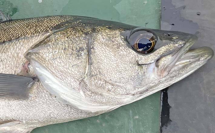 すぐに細長い魚影が見え、スズキだと分かり少しテンションが下がる。気を緩めるといきなり引きだした。すぐに浮いたわりにはしつこく抵抗したが無事ネットイン。