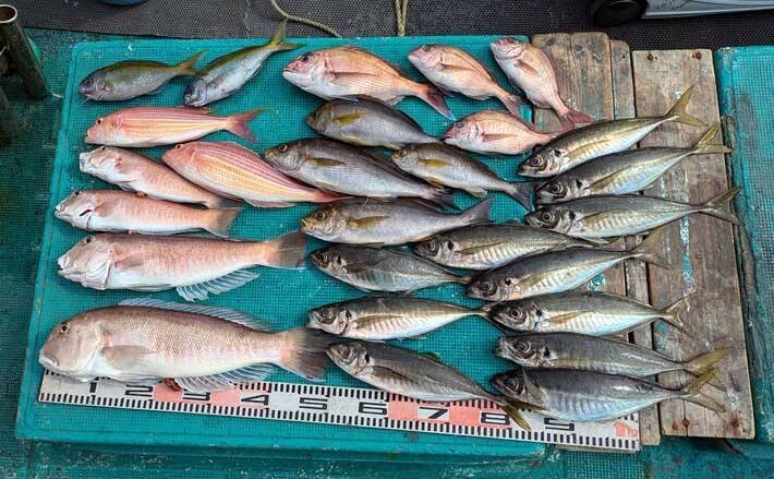 さて、大アジは5月末まで、イサキは6月末までが狙いめです。水温が上がれば、ウメイロに尾長グレも釣れ出す事でしょう。オキアミ五目は最盛期となります。リレー便も楽しいですよ。