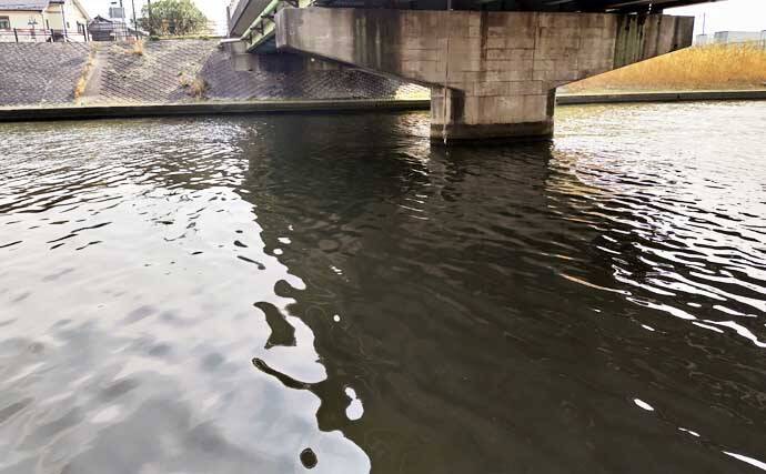 今回上流へと釣り歩き、橋脚下を中心に4カ所もポイントを回ったが、全く反応はなかった。潮が引くタイミングで流れが出始めたが、どこへ入っても釣れそうで釣れない。