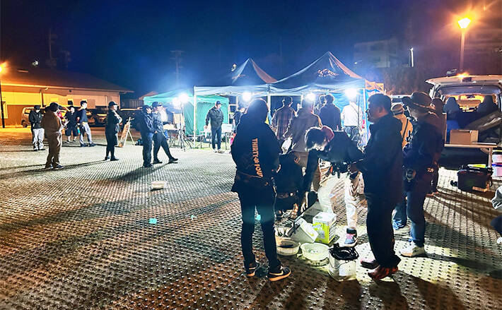 大会終了後は、プロスタッフが「残業アジング」と称して釣りを楽しむ時間。参加すれば丁寧なレクチャーも受けられ、著名アングラーと直接会話するチャンスも。時間が許すなら、ぜひ参加してみてください。
