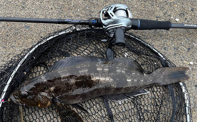 雨の中仕留めた40cmのアイナメ(提供:TSURINEWSライター・久末大二郎)魚のコンディション自体はものすごく良かったので、元気にファイトしてくれました!