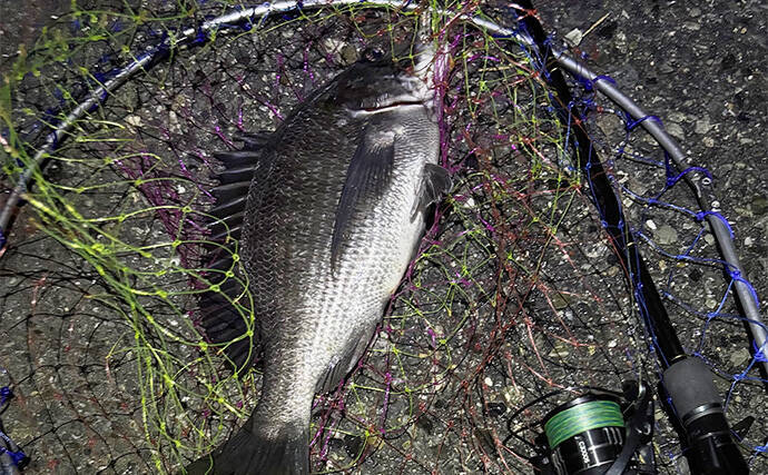 地味~なこの釣りを続けていると、ファーストヒットはバシャンと水面を割って飛びついてきたシーバス。しかし、こいつは惜しくも外してしまう。うーん。これは泣きの1本になるかもしれない。結果的にこの日はシーバスは釣れなかったので、このバラシは痛恨だったといえる。