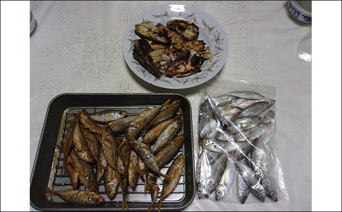 持ち帰った釣果のうち中アジは塩焼き、その他の小アジ・豆アジは唐揚げと煮つけにして、カンダイは新鮮で旨味を備えた極上の食材。たっぷりと身を取ることができ、3日間に分けて夕食で食味を堪能した。