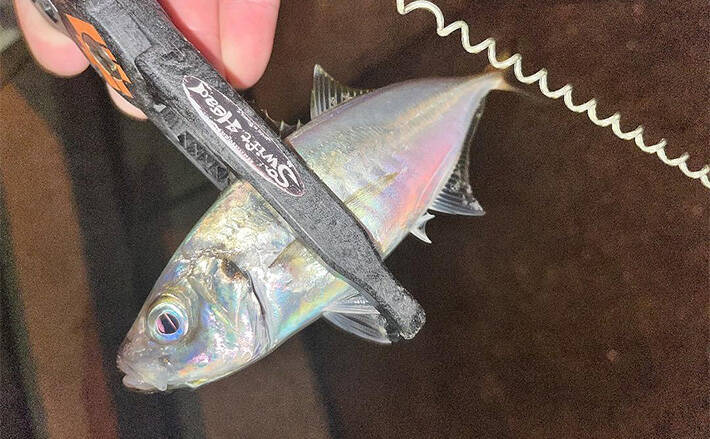 横目に着水からのカウントをしてみると10カウント程度と思われる。多分、沈めて釣るより浮かせて漂わせるほうが釣れているようだ。無理に沈めてもフグにやられるようならば浮いているアジを狙う方が効率的だろう。