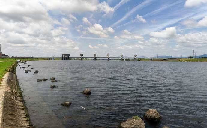 諦めかけて戻る途中、水面に大きな波紋を発見。「……いる!」テンションが一気に上がり上流の水門を攻めたが、筑後川特有の干満差でエサがひたすら流されてしまう。