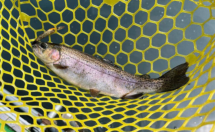 次にイーグルプレーヤー50スリムGJとTCレイゲンのミノーで狙ってみる。やはりミノーが効く釣り場なので反応は上々だ。お昼までに何とか20匹を達成したタイミングでお昼とした。