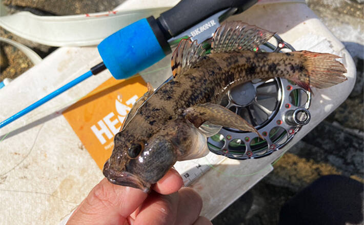 穴へ潜ろうとする魚体を強引に制して浮かせると、上がってきたのは17cmのウロハゼ。