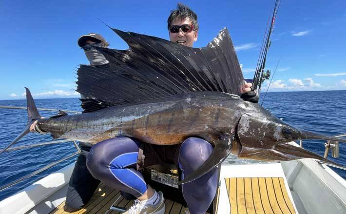 私の釣り上げたバショウカジキは2m37cm、推定で35kgほどだろうか。達成感と疲労感が合わさった、何ともいえない最高の気持ちだった。