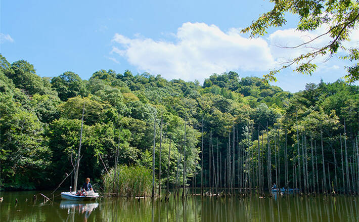 そんなことを話していた矢先、吉田の右前沖に突き出た立ち木の沖で、複数回モジリが見られのを機に竿替えを決断。同立ち木の沖側左にウキが立つよう竿を13.5尺に替え、念のため水深を測ろうと底ダテを始めた。