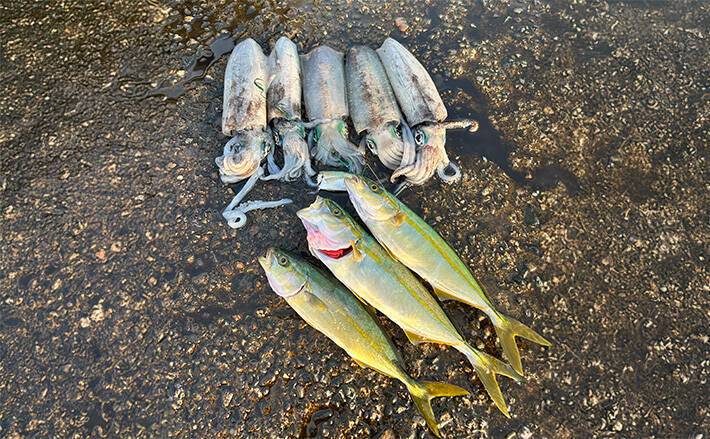日中は、イカも活発ではないので、無理してアジを浪費するのではなく あえて元気のないアジで遊ぶのもありです。それでも釣れる時は釣れますし、当日実際、青物が遊んでくれました。