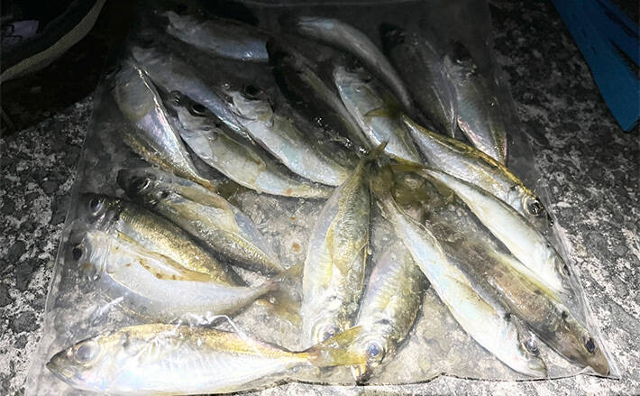 やれば際限なく釣れそうだったが、20匹程捕獲し今晩のおかず分は十分確保できたので納竿とした。帰宅後は南蛮漬けを作成。豆アジより少し大きいため、骨は若干硬かったがとても美味しかった。