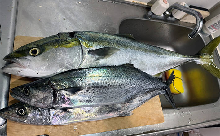 11月に入り水温が落ちてくると大阪湾ではベイトが増え、それを追って青物が入り多くの堤防で青物祭りが開催される。夏から好調に釣れているサゴシに加え、イナダやハマチなどのブリ族も交じってくる。