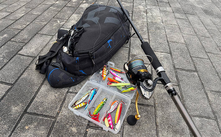 ここではメタルジグの早巻きが有効だ。着水後すぐに巻き始め、表層~中層をテンポよく引いてくる。ショアジギング専用のペンシルジグやスリムタイプのジグなど、飛距離が出て、素早く巻けるルアーが活躍する。