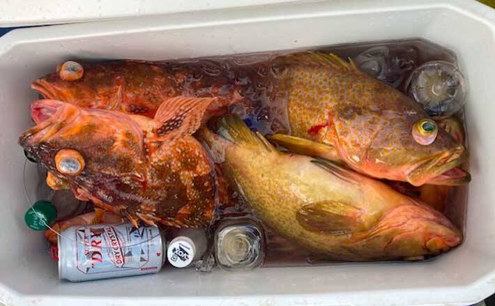 結果、私は30~40cmクラスのアコウ3尾、ボッコ4尾、アカヤガラ2尾。Oさんは同サイズのアコウ、ボッコなど私の倍近い釣果、逆にインチク組は釣果が伸びず。