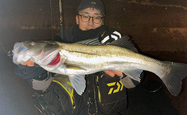 山口県でのナイトシーバスゲームに出かけた筆者。気温が1℃まで下がる中、ウェーディングを開始。