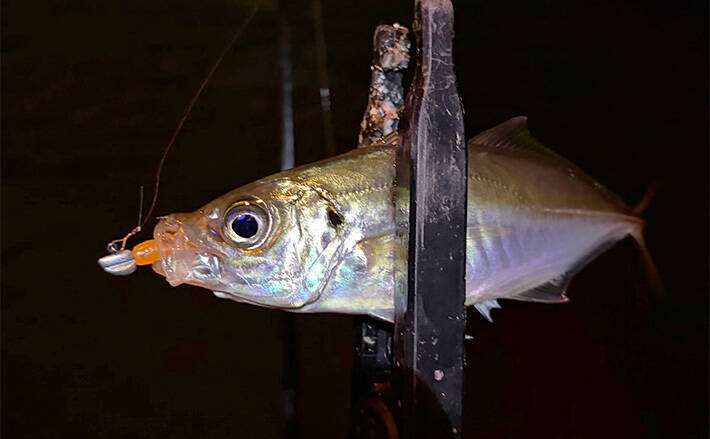 渋い日の攻略術について、この日はひとつ新しく学んだ。われわれはどうも渋い日にはアジの口に合わせるためにリグを極小にしていくが、あえて逆に大きなワームを使う手もあるようだ。ちょっとでも食い気のヤツがいれば、そいつが突いてくる。まだ希望が持てる海なら、この「高活性な豆アジ」を狙う釣り方もいいかもしれない。