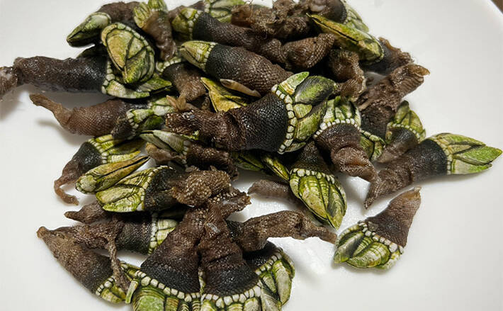カメノテは見た目から貝の仲間と思われがちだが、実はエビやカニと同じ甲殻類の仲間。磯場やテトラポッドの隙間などに生息している。あの見た目からは想像つかないが食味は非常に美味。貝のような食感にエビやカニに似た濃厚な旨味を持っており、一度食べると病みつきになる。