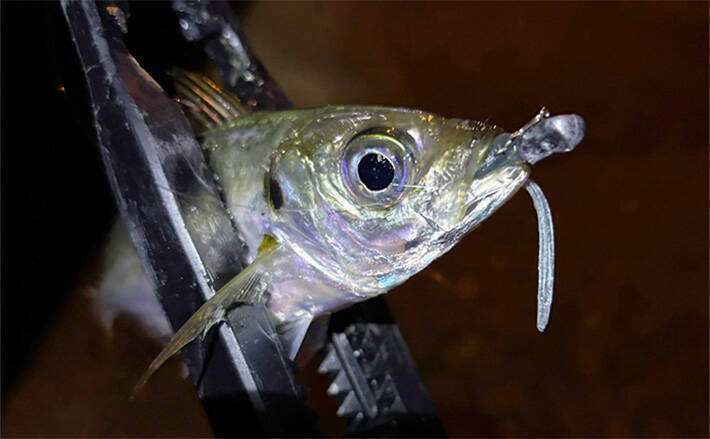 メバリングでは、そうして反応を見ながら、どのようなワームのサイズやジグヘッドの重さが最適かを探っていく。この調整を繰り返すことで、もっとも魚が好むリグの組み合わせを見つけることができる。