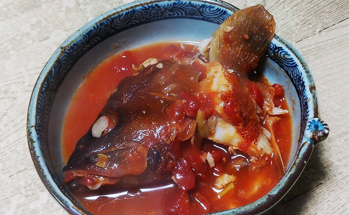 まずは下処理から。持ち帰ったアカハタはエラを外し、ワタをとる。次にウロコを剥いで水洗いする。