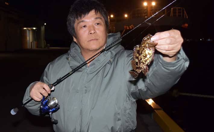 カサゴは底にいるイメージだが、水深のあるふ頭周りではカキ殻などが多く付着している壁に着いている。水面下1mほどのタナに着いていることも珍しくない。