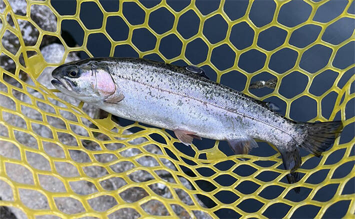 いきなり当たりくじを引いた感覚で気分がいい。カラーもUV加工された放流~セカンドカラーであった点も良かったようだ。放流までに10匹をキャッチで幸先良いスタートを切れた。