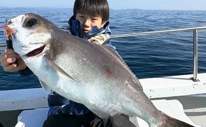 三重県志摩市浜島の塩屋から出船しているフィッシングガイドおちょ丸では、14日にジギング&タイラバで出船。65cmの大ダイが上がったほか、ジギングでメダイ、ハチビキ、ワラサなど多彩な魚がキャッチされた。