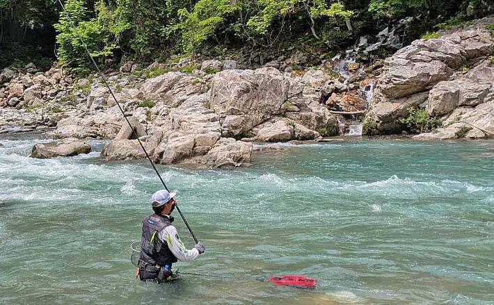 サオは8mが使いやすい。増水時は瀬が良く、水が引いたら淵を狙うパターン。