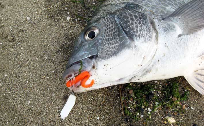 ラバージグは7~12g、トレーラーのワームは2inchのカーリーテールグラブやホッグワームなど。このくらいの軽量タイプのチヌラバが干潟サーフには最適だ。