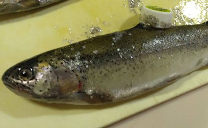 「これは面白いぞ!」ということで、気を取り直して仕掛けを入れなおすと再び大きなアタリ!今度は魚とのやり取りを楽しみつつ、うまく寄せて無事ネットイン! 獲物は元気の良い27cm(帰宅後測定)のニジマスでした。