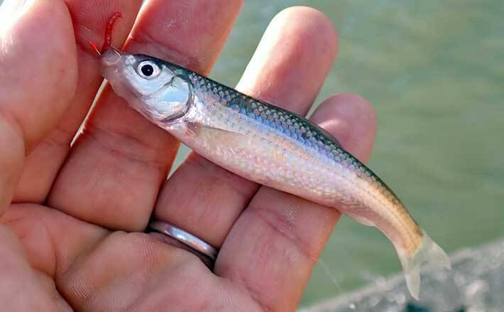 周辺の釣具店には専用のご当地仕掛けもあるが、今回は入手しやすいワカサギ仕掛けを流用した。エサはアカムシのチョン掛け。普段アジやメバルに使っているライトタックルに、3号のオモリをセットしてブッコミ釣りで狙う。
