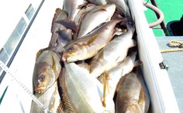 4月5日、福岡市中央区港のかもめ広場前から、第一ゆひな丸・どらごんが玄界灘のイサキ・マダイ狙いテンビン五目釣りに出船。イサキは良型揃いで1投目から納竿時間まで入れ食いし、釣る人は60~70尾。船長は「白子が入って食べてもおいしい。頻繁にアタリがあるから飽きることもない。昨年の同じ時期よりもイサキは多く感じる」と好調を話す。マダイが乗っ込みシーズンに入り、タイラバも出船。