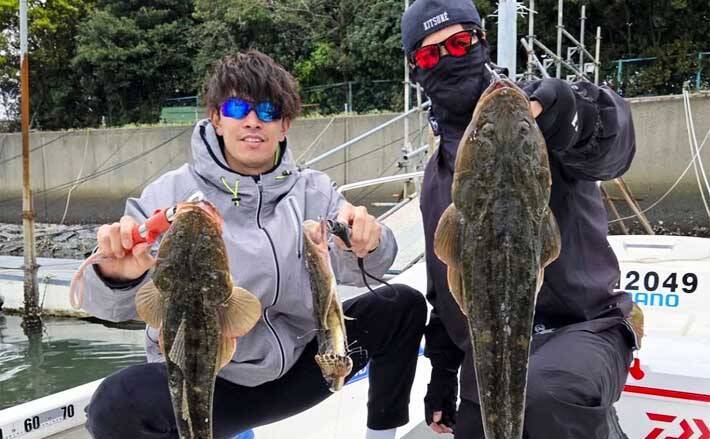 愛知県常滑市にある苅屋港出船のオールレイドでは、4月20日にマゴチ狙いで出船。見事60cmアップのマーゴンサイズを頭にマゴチが連発。また、同日夜のロックフィッシュ狙いでは、28cm頭に良型のメバルが連発しカサゴも多数ヒットした。さらに14日もマゴチが順調にヒットし、ボートマゴチ初チャレンジの人が、見事62cmのマゴチを2匹もキャッチした。直近で実績を上げているワームは「ディープバイト」、ジグヘッドは15~40gまでご用意を。