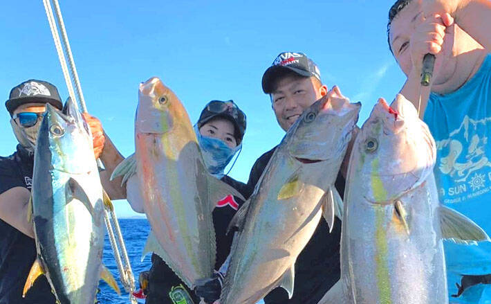 カンパチを釣ったあとに中深場に移動して狙うこの魚はゲーム性が高く非常に面白いターゲット。ジギングで狙うのであればPEライン2号にフロロリーダー35lbにスロー系ジグがお勧め。