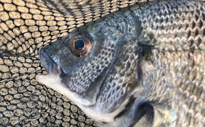 しかし、相変わらずエサ取りは非常に活発で、丸貝もフグが割るほど。クロダイの捕食のタイミングがないのが一番の原因かと思うが、エサが残っている間が少し長く感じる時がチャンスで、かなりの確率でクロダイがアタックしてくる。