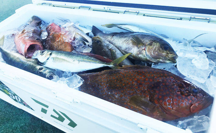 マダイ、ヤズ、イトヨリダイなども追加し、気付けば50Lのクーラーボックスが満タンになっていた。