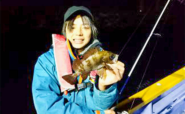 木更津出船の宮川丸では主にルアーで狙う。シーズン序盤はアジも元気なので、よく交じる。2日はリレーで狙ってメバルはいい人10尾前後でアジはトップ40尾。