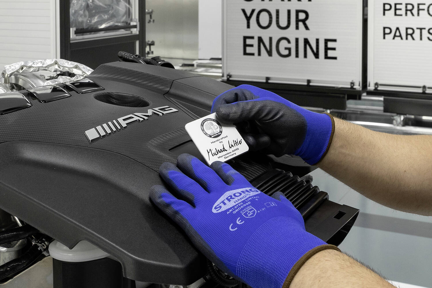 「ワンマン・ワンエンジン」で知られるAMG。これは1基のエンジンをひとりのエンジン工であるマイスターたちが責任を持って組み立てるという意味で、多くのAMG車のエンジンはこのポリシーに従って組み立て搭載されてきた。その証拠はエンジンフードを開けるとエンジン上部に貼付けられた名前が刻印されたプレートにある。