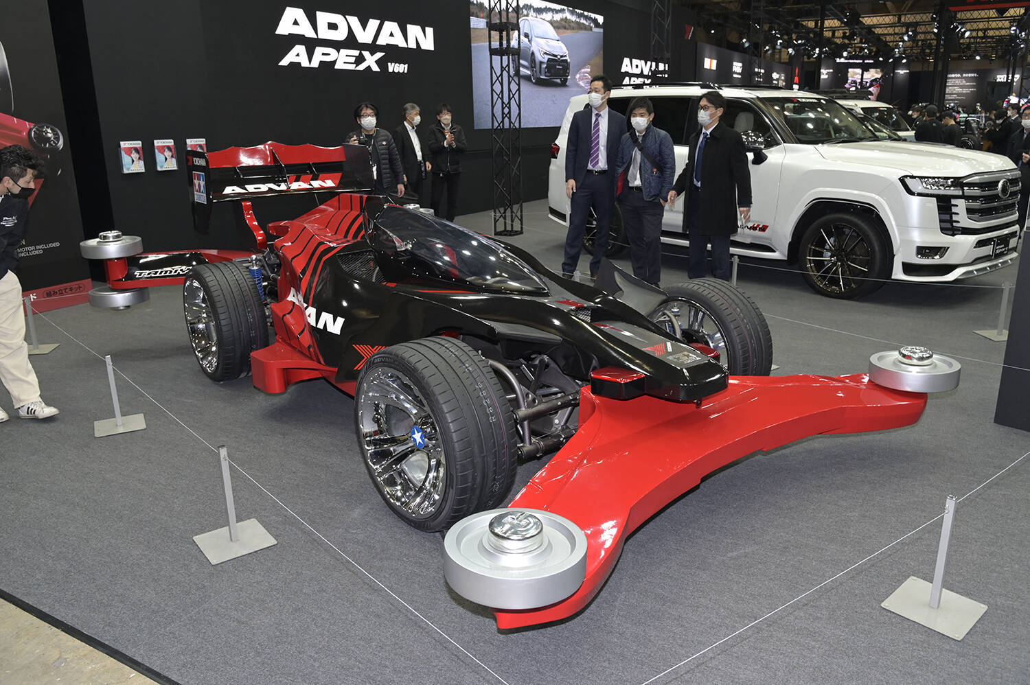 ■東京オートサロン2023にヨコハマがブースを出展■1分の1で実車化されたミニ四駆「エアロアバンテ」をアドバンカラーにして展示