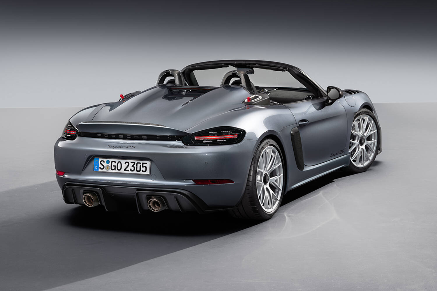 ちなみに718スパイダー RSの車両重量は、PDK搭載の718スパイダーより40kg軽く、クーペモデルのトップグレードである718ケイマンGT4 RSよりも5kg軽い、1410kgを実現。