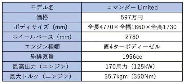 ジープ・コマンダーのスペック表